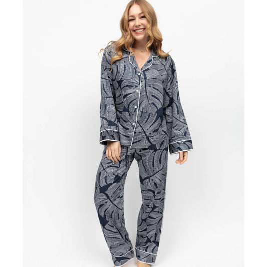 Fable and Eve Long Sleeved Pyjamas - Knightsbridge Navy Leaf