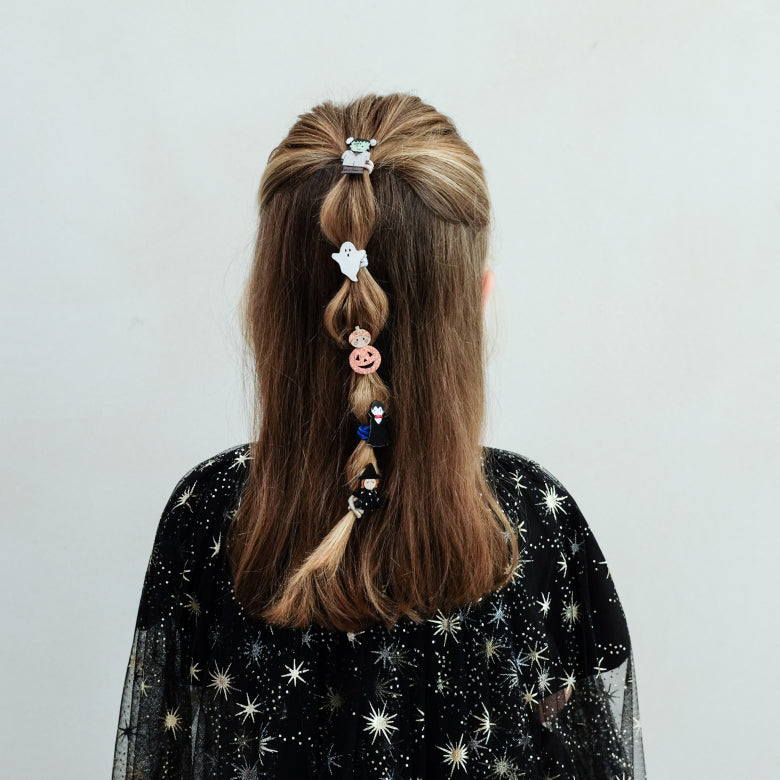 Add some frightful fun to little locks this scary season with our Monster mini ponies! Featuring tiny versions of all the biggest characters - these are perfect for mixing and matching to compliment any costume! 6 in a pack 3cm stretchy and strong contrasting elastics Characters crafted from a mix of soft suedette and glitter fabrics