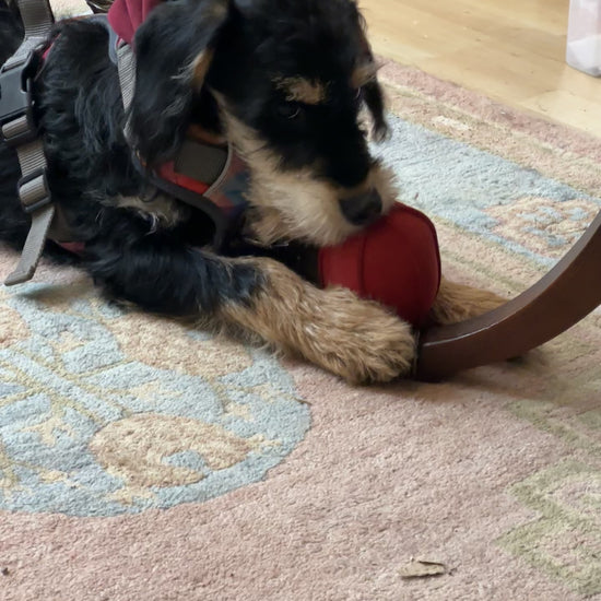 A note from Emily. Hugo loves his ball and it is perfect for him to play with either in the boutique or at home. It is very hardwearing which is especially good for a teething puppy - Hugo just knew away at it in between tossing it around!